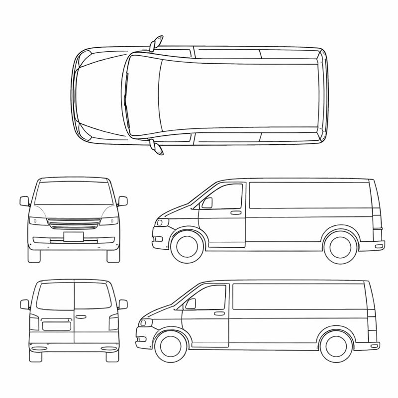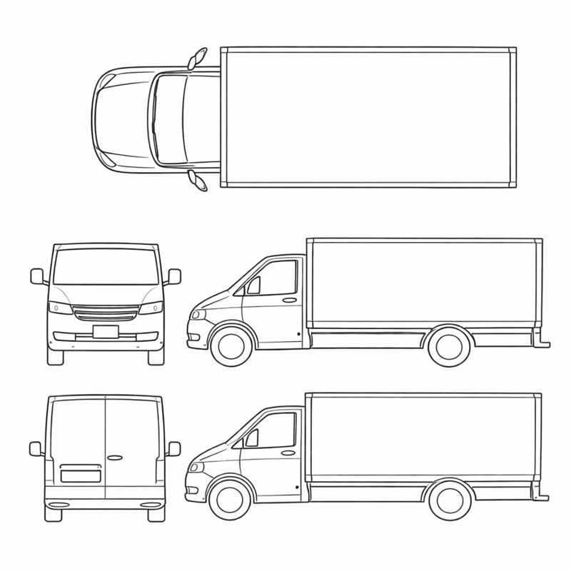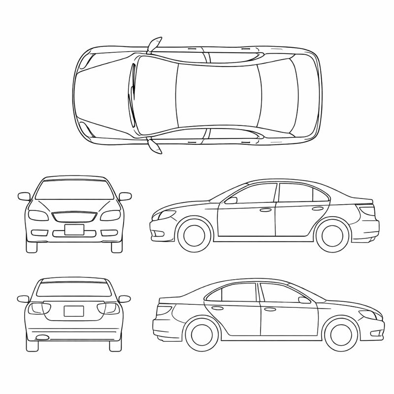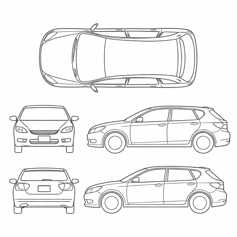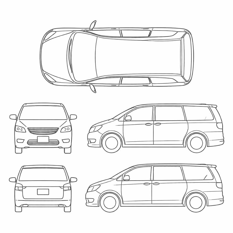 - Sedan, SUV, van, pickup, hatchback, coupe, convertible, passenger van, box truck, golf cart, motorcycle, bicycle, and tractor/other layouts.